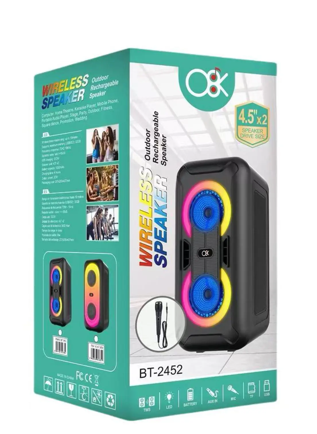 • בידורית קריוקי דגם BT-2452רמקול בגודל 9 אינץ’ בעוצמה של 30W עם מיקרופון חוטי